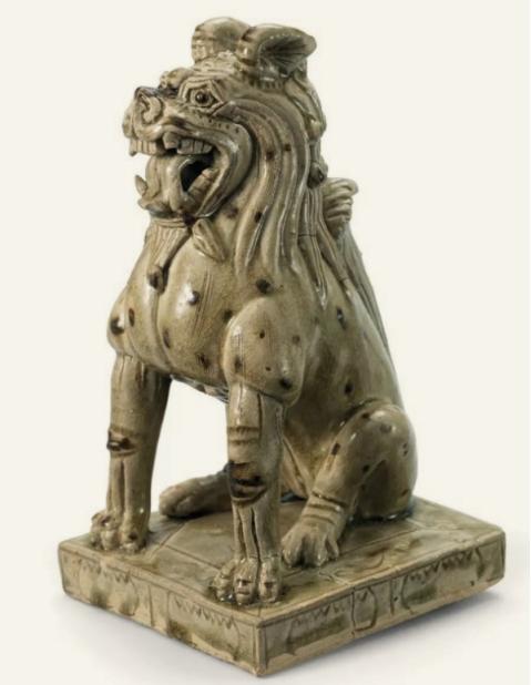 (初唐)岳州窑青釉点褐彩狮子坐像